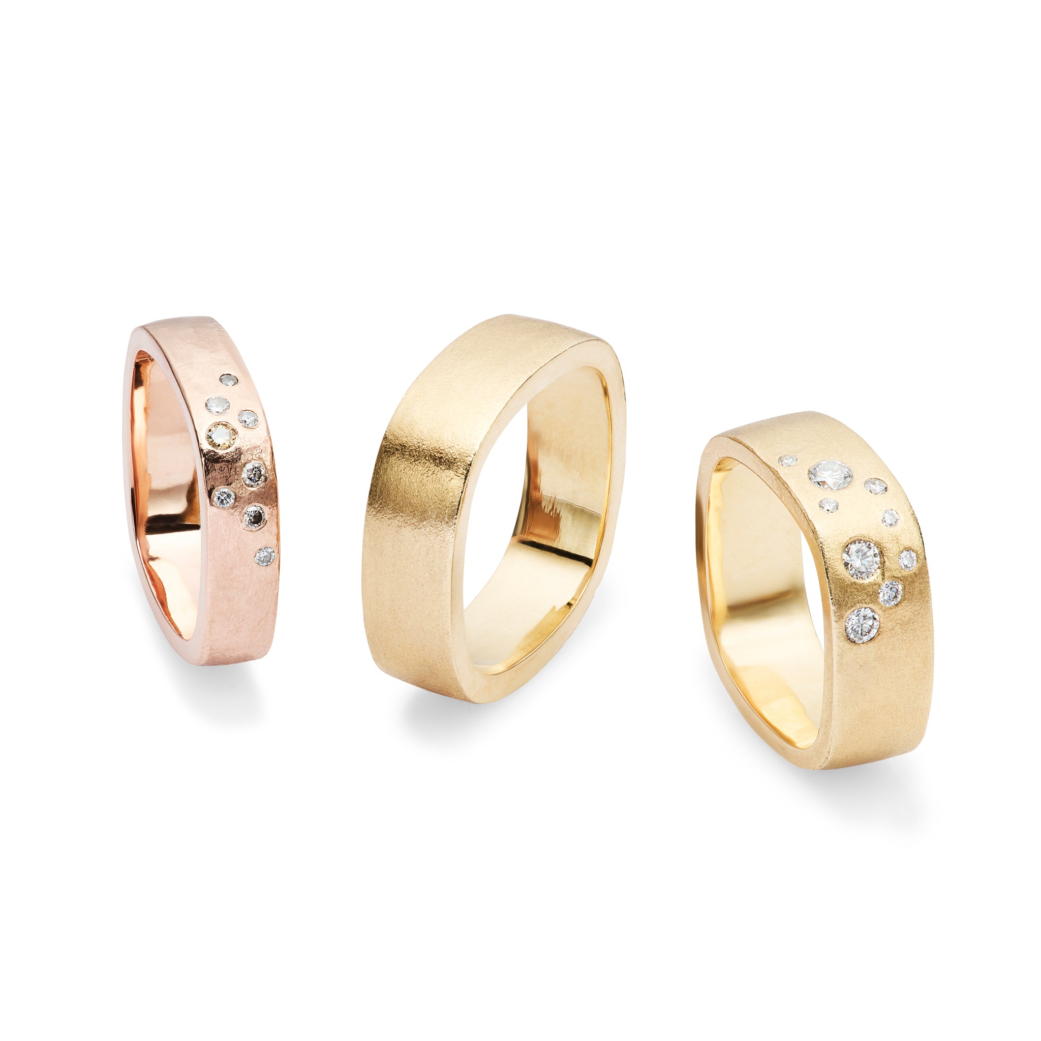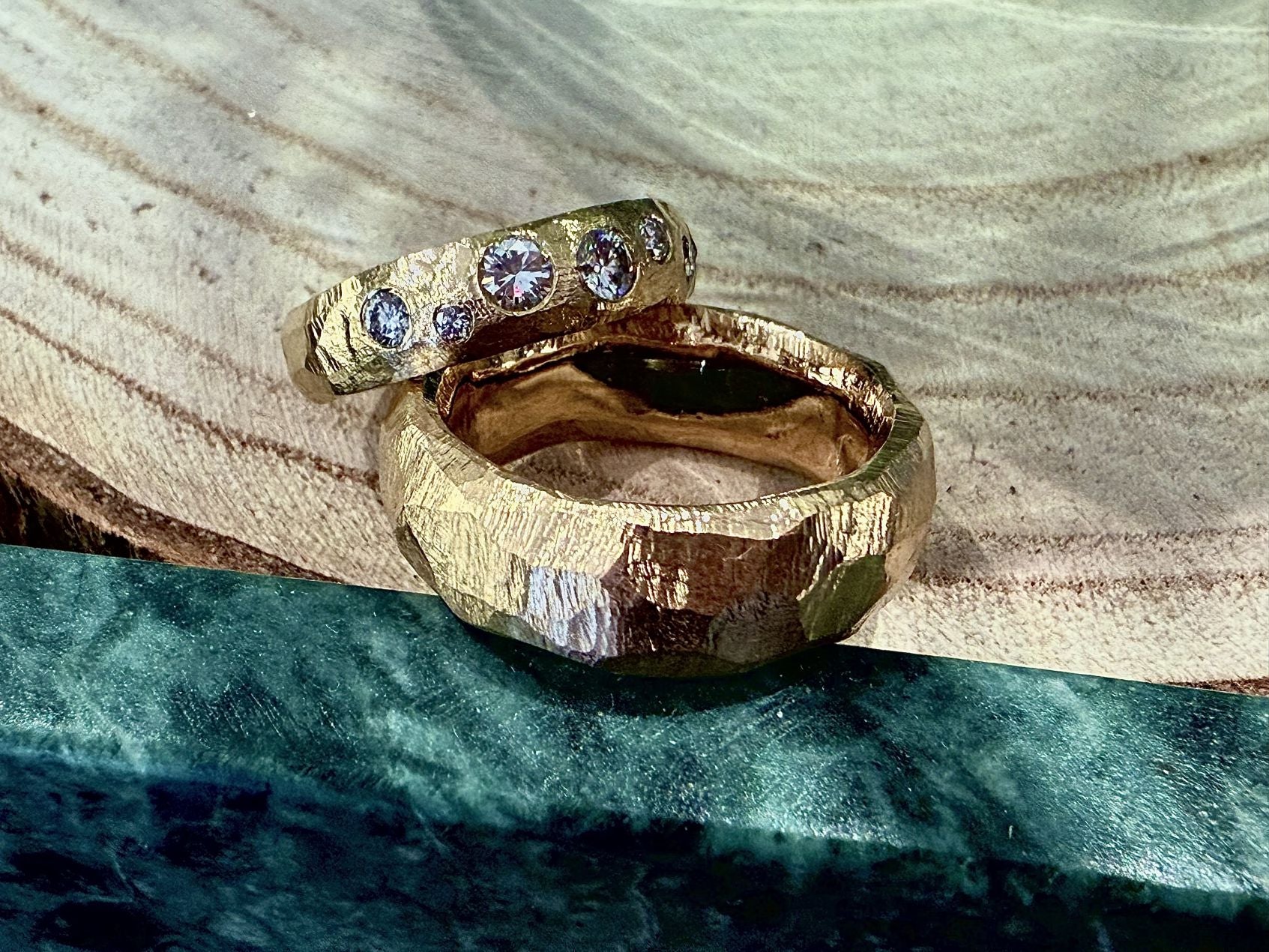Håndlavede vielses- og forlovelsesringe skabt med omtanke, ærlige materialer og personlig dialog – formet til at vare hele livet.